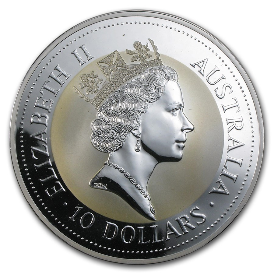 De Kookaburra is een prachtige Australische munt uitgegeven door de Perth Mint. Op de voorkant staat een prachtige afbeelding van de Kookaburra, op de achterkant het portret van Queen Elizabeth II. Deze munten bevatten een zilver gehalte van 99,9%. Deze munt bevat 311 gram puur zilver.