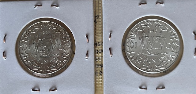 Een chronologisch overzicht van munten uit Suriname, Curaçao en de Nederlandse Antillen tussen 1900 en 1980