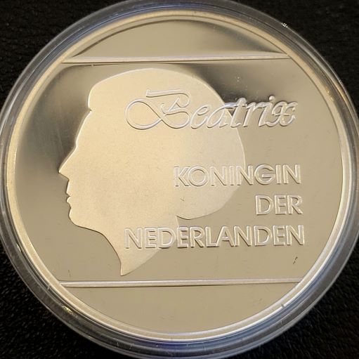 Onder Koningin Beatrix, zijn tussen 1989-2001 een aantal verschillende zilveren 25 Florin munten uitgegeven. Elk jaar bevat een andere beeltenis. De munten wegen 25 gram en bevatten 92.5% zilver (23,125 gram netto) . De munten die wij hier verkopen zijn geslagen in Proof kwaliteit. U krijgt een willekeurig jaartal geleverd!