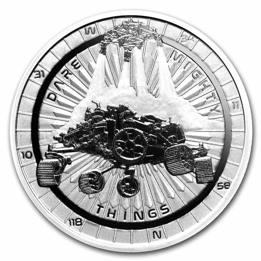 Deze munt bevat een afbeelding van de Perserverance Rover en was onderdeel van de NASA Mars 2020 missie. Geplaatst voor het uitvoeren van meerdere onderzoeken om gegevens te verzamelen over Mars.