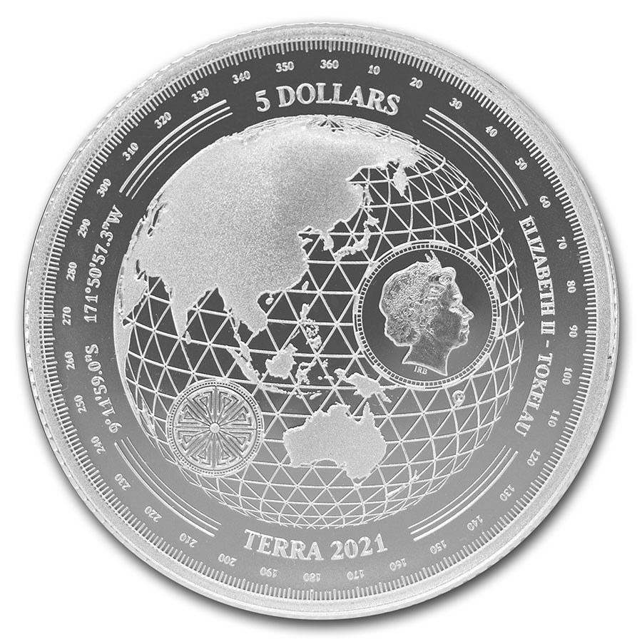 Tokelau – Terra Silver Coin 1 oz, De aarde “Terra” in het Latijn is ons enige thuis, Deze munt gaat in op het belang van de bescherming van onze planeet en de verbeteringen van onze relatie met de planeet aarde.