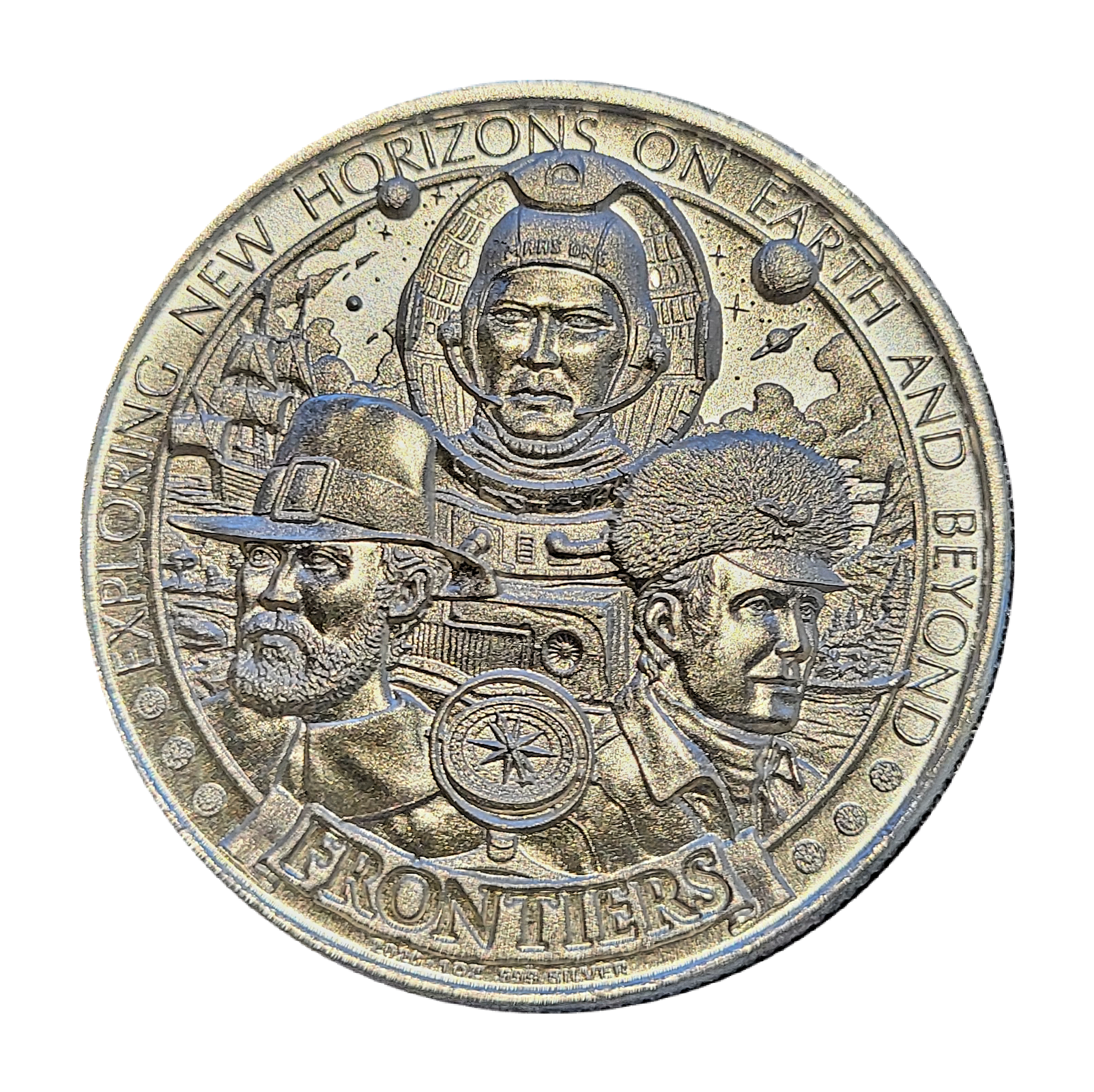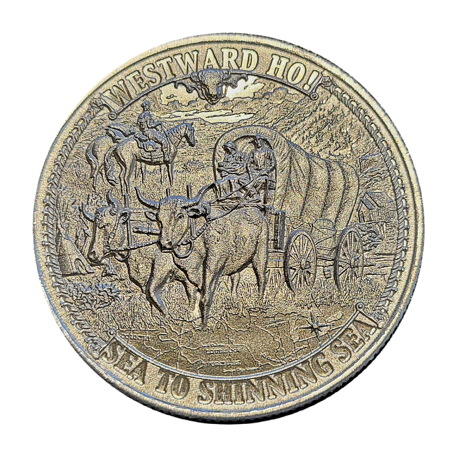 Een munt “Westward Ho!” met als thema de Final Frontiers, mooi weer gegeven door het Amerikaanse Mason Mint.