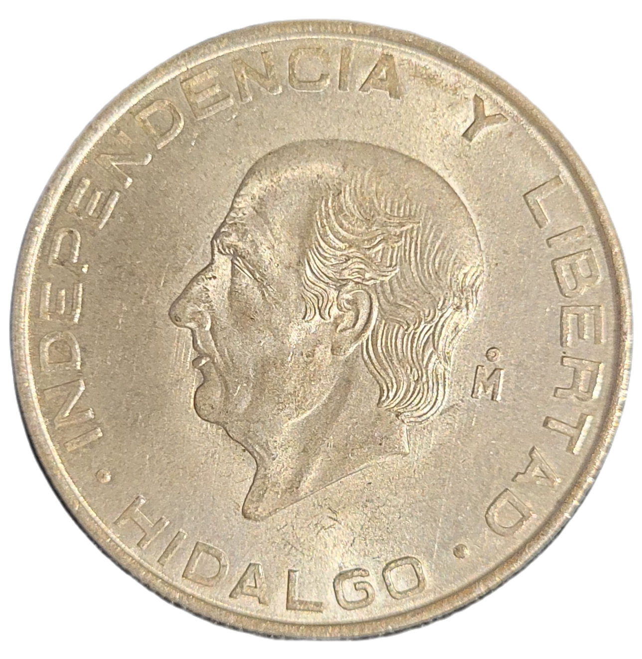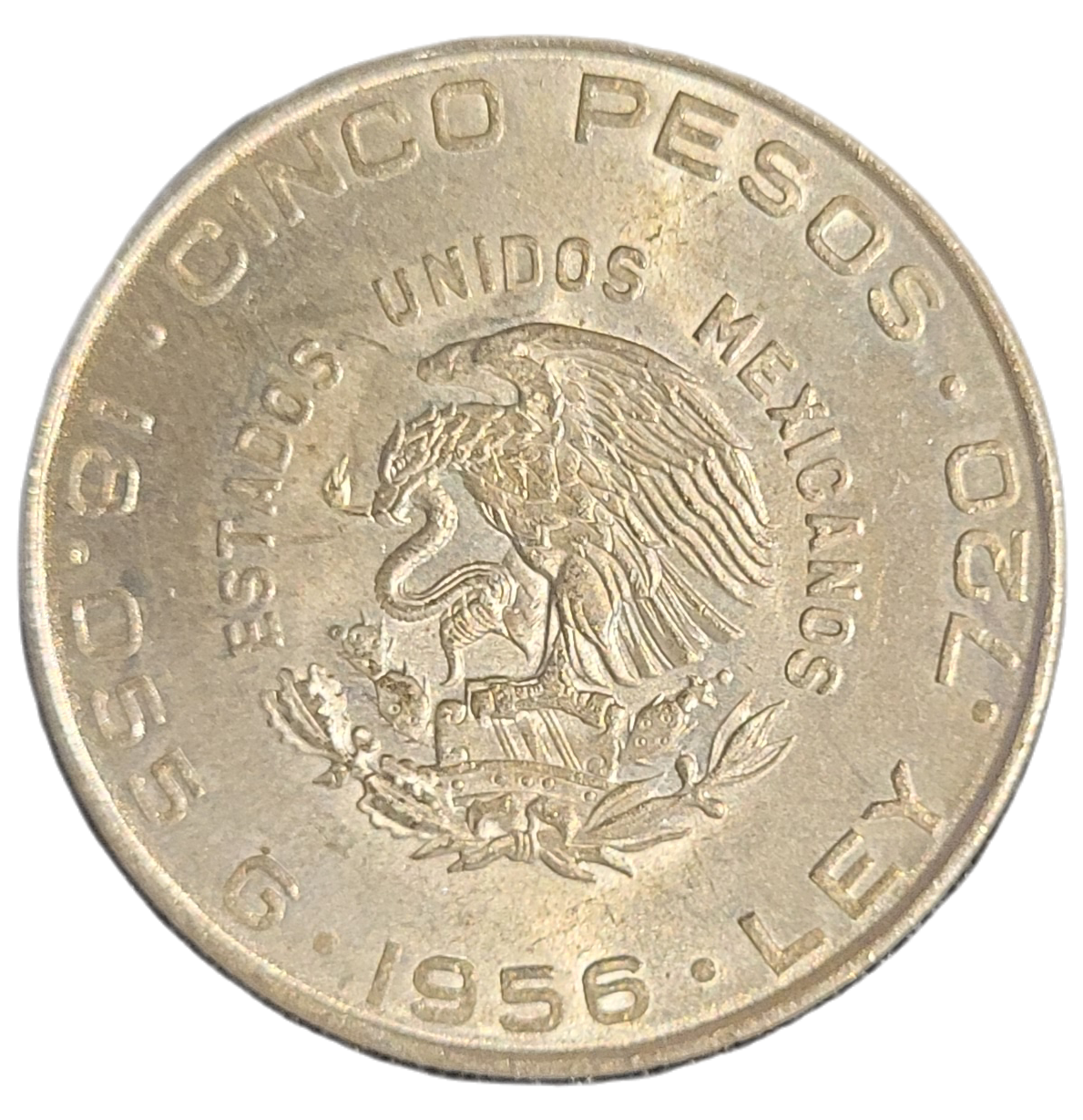 Deze Mexicaanse zilveren 5 Pesos uit de periode 1955-1959 hebben een zuiverheid van 720/1000e zilver. Het gewicht per stuk is 18,05 gram. Het netto gewicht bedraagt 13 gram zilver. De 5 Pesos (cinco pesos) hebben afbeeldingen/onderwerpen zoals Hidalgo, 100 jarige constitutie en Ano de Carranza.