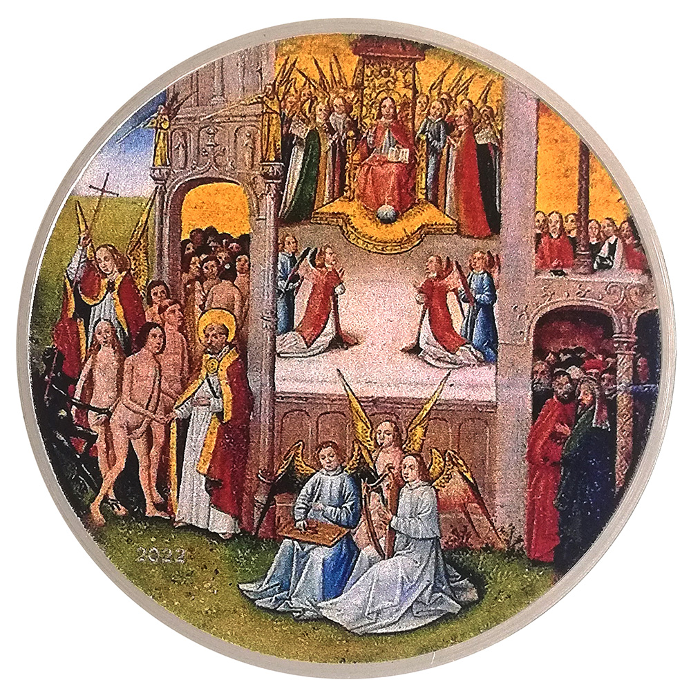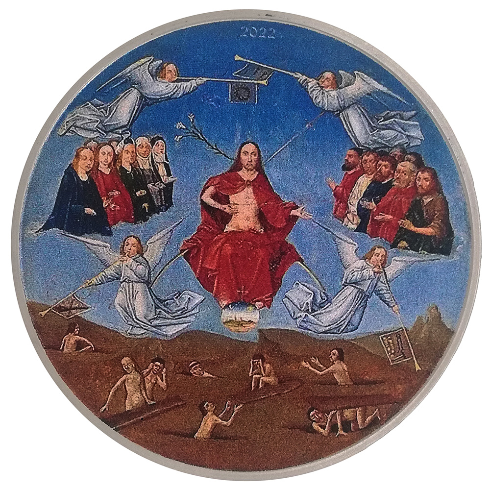 Op de ½ oz-munten zijn de ‘vier laatste oordelen’ afgebeeld: dood, oordeel, hemel en hel. De centrale munt van 3 oz, die hol is, beeldt de zeven hoofdzonden af: toorn onderaan, en vervolgens (met de klok mee) afgunst, hebzucht, gulzigheid, luiheid, lust en trots, waarbij scènes uit het leven worden gebruikt in plaats van allegorische afbeeldingen van de zonden . In het midden het oog van God, een leerling waarin je Jezus uit zijn graf kunt zien tevoorschijn komen. Onder deze afbeelding staat de Latijnse inscriptie: “Cave Cave Dominus Videt” – wat betekent “Pas op, pas op, de Heer ziet”. Op de voorzijde van de munten staat het wapen van Palau en de inscriptie: “REPUBLIC OF PALAU” – het land van uitgifte. De nominale waarde van de 1/2 oz-munten is “2$”, terwijl de nominale waarde van de 3 oz-munt “20$” is.