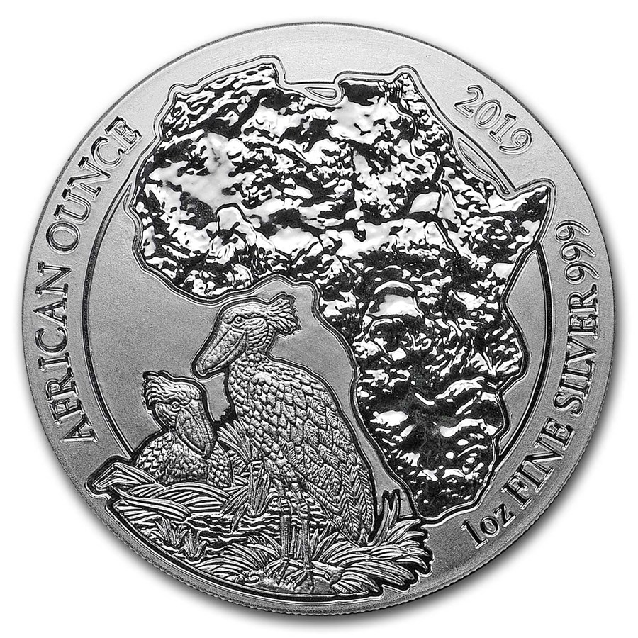 De Rwanda / Ruanda African Shoebill (Schoenbekooievaar) 2019 bevat een zilver gehalte van 99,9% en is geslagen in Duitsland door B.H. Mayer’s German mint Kunstprägeanstalt Gmbh, in opdracht van de overheid van Rwanda. De munt wordt pas sinds 2008 geslagen, en is daarmee één van de nieuwste munten die beschikbaar is voor investeerders en verzamelaars. De munten wegen 1 troy ounce = 31,1034768 gram.