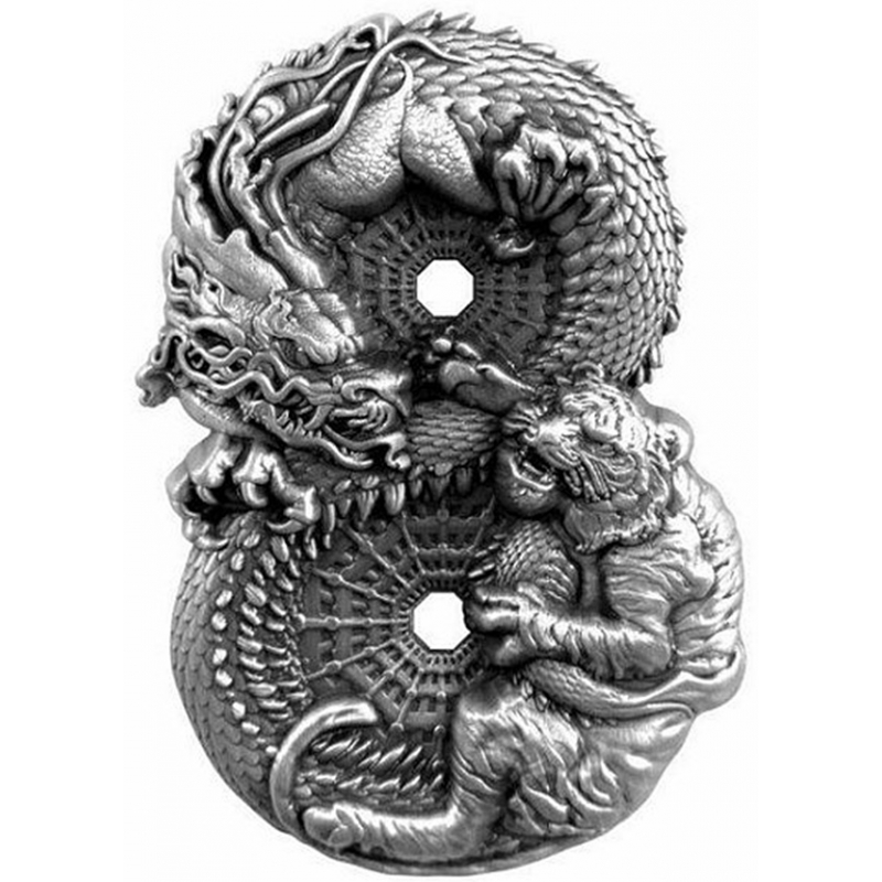 Deze uitvoering van de Tokelau Dragon & Tiger 3 oz 2022 is de laatste in een serie van de “figure 8”. In de Chinese cultuur wordt het cijfer 8 gezien als een geluk cijfer. De Dragon and Tiger die op de munt zijn afgebeeld staan voor Yin en Yang.