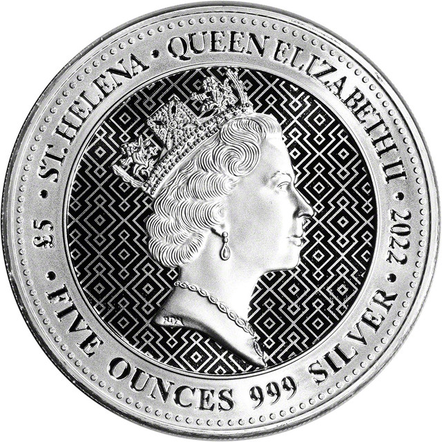 De Truth Conquers All 5 oz St. Helena munt uit 2022 bevat een zilver gehalte van 99,9% en is geslagen door de East Indian Company. Dit is de tweede munt uit een serie van 6 munten elk symboliserend een van de deugden (Overwinning, waarheid, goedheid, gerechtigheid, moed en standvastigheid).