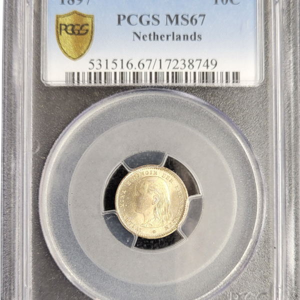 • Koningin Wilhelmina 10 cent 1897 PCGS MS67 gecertificeerd (pop 4/1)